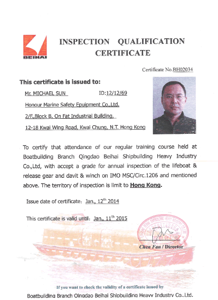 Certiificate of Qingdao Beihai Lifeboat