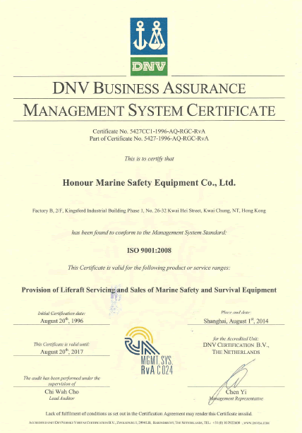 3) ISO 9001:2008 issued by DNV