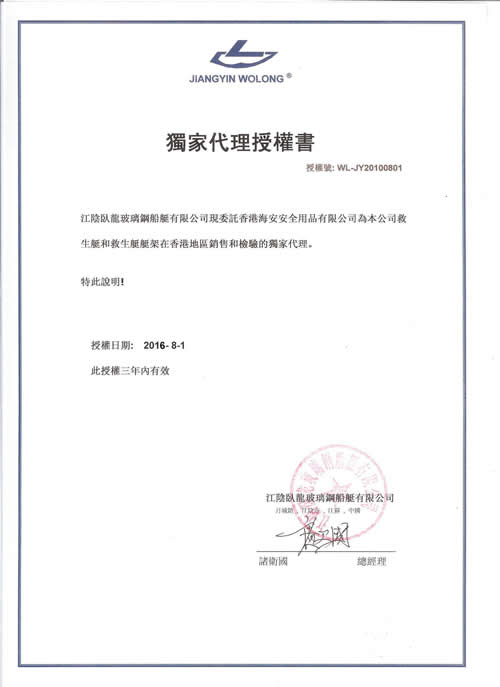 7) Certificates of Wolong Lifeboat